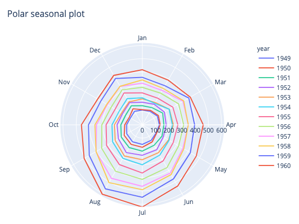 This is a variation of the seasonal plot, with the difference that it uses polar coordinates. Personally, I prefer the traditional seasonal plot, however, I am sure it is also useful for some specific cases.