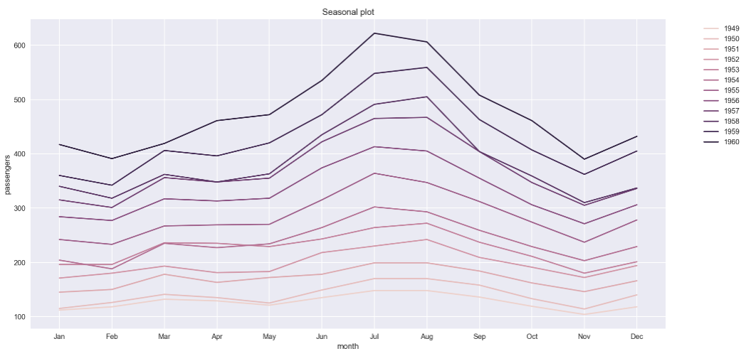 We can see that instead of plotting all 11 years as a one long series, we plot the same data per month. By doing so, we can clearly see the following: